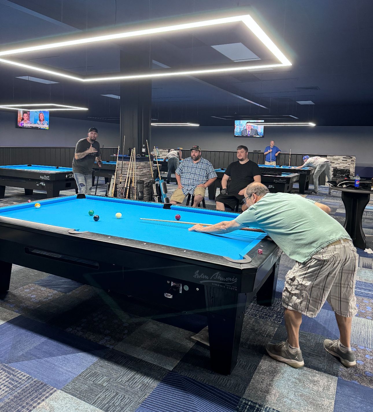 Tiny & Jaime have poured their heart and soul into transforming the location with the best options available, including 12 brand-new Premium Diamond Billiards Tables covered with 860 Simonis Cloth lit up with Premium LED Overhead Billiard Table Lights over each of the tables, 10 - 65" high definition televisions and the most vibrant flooring any establishment has to offer!