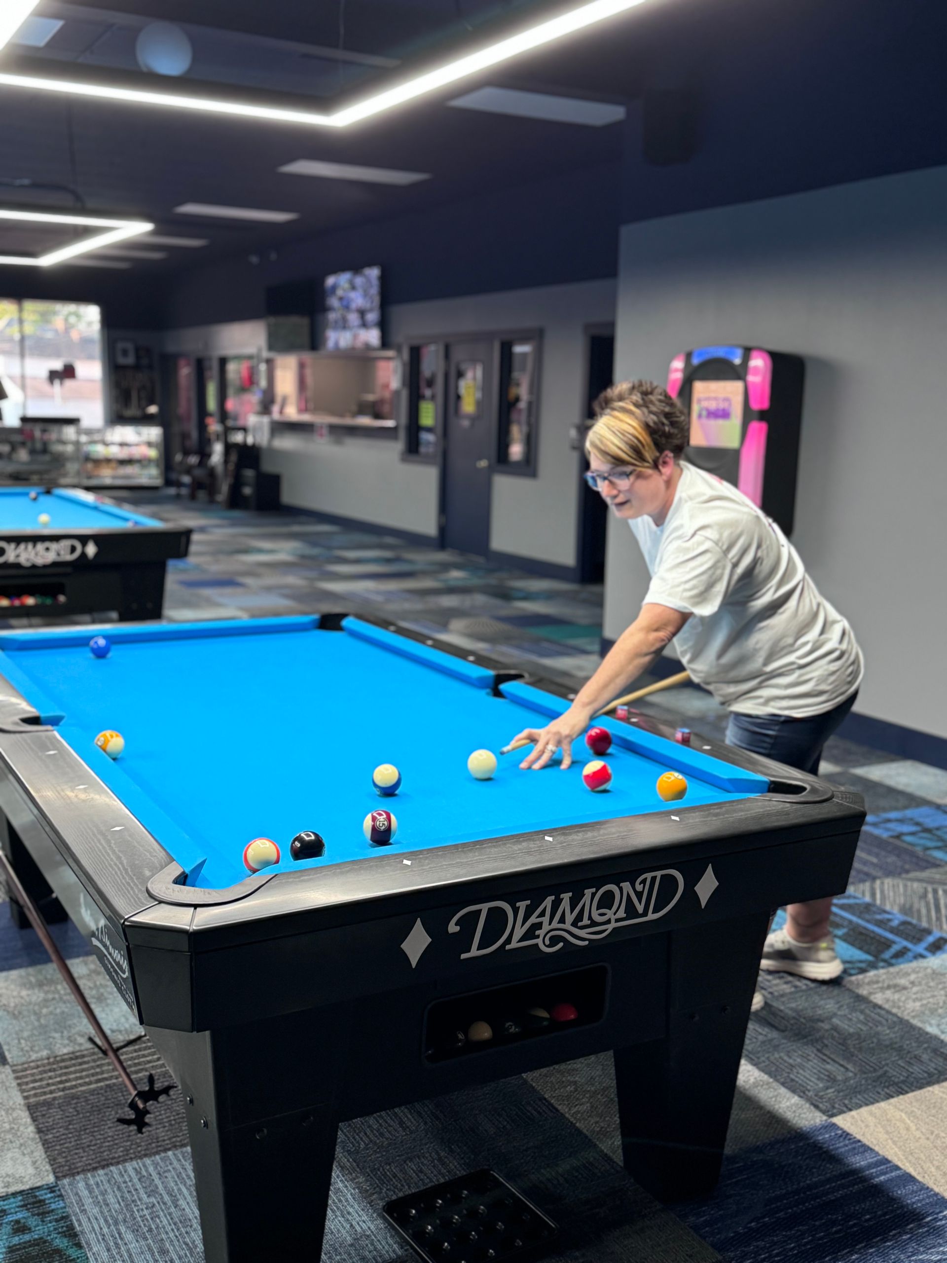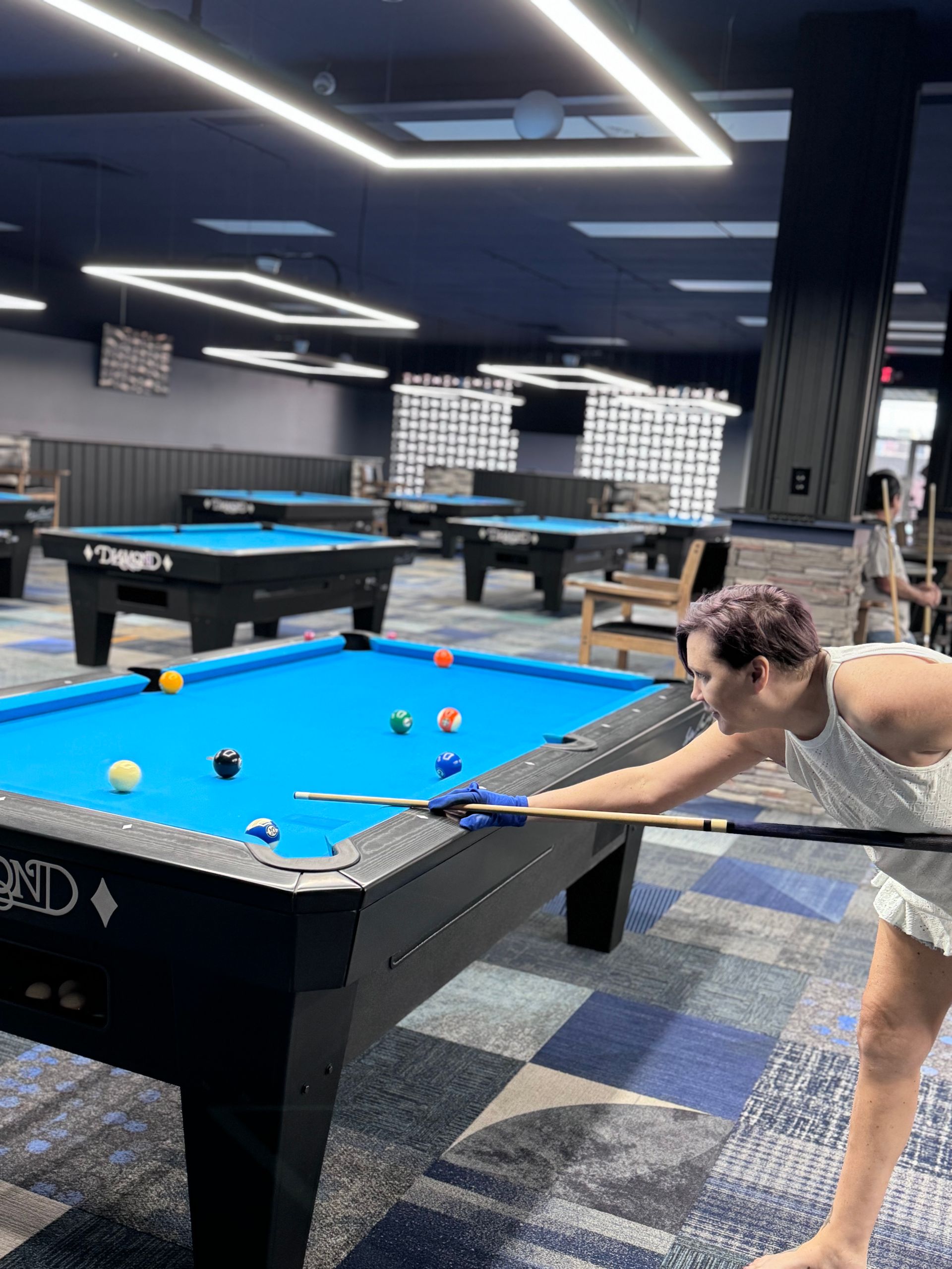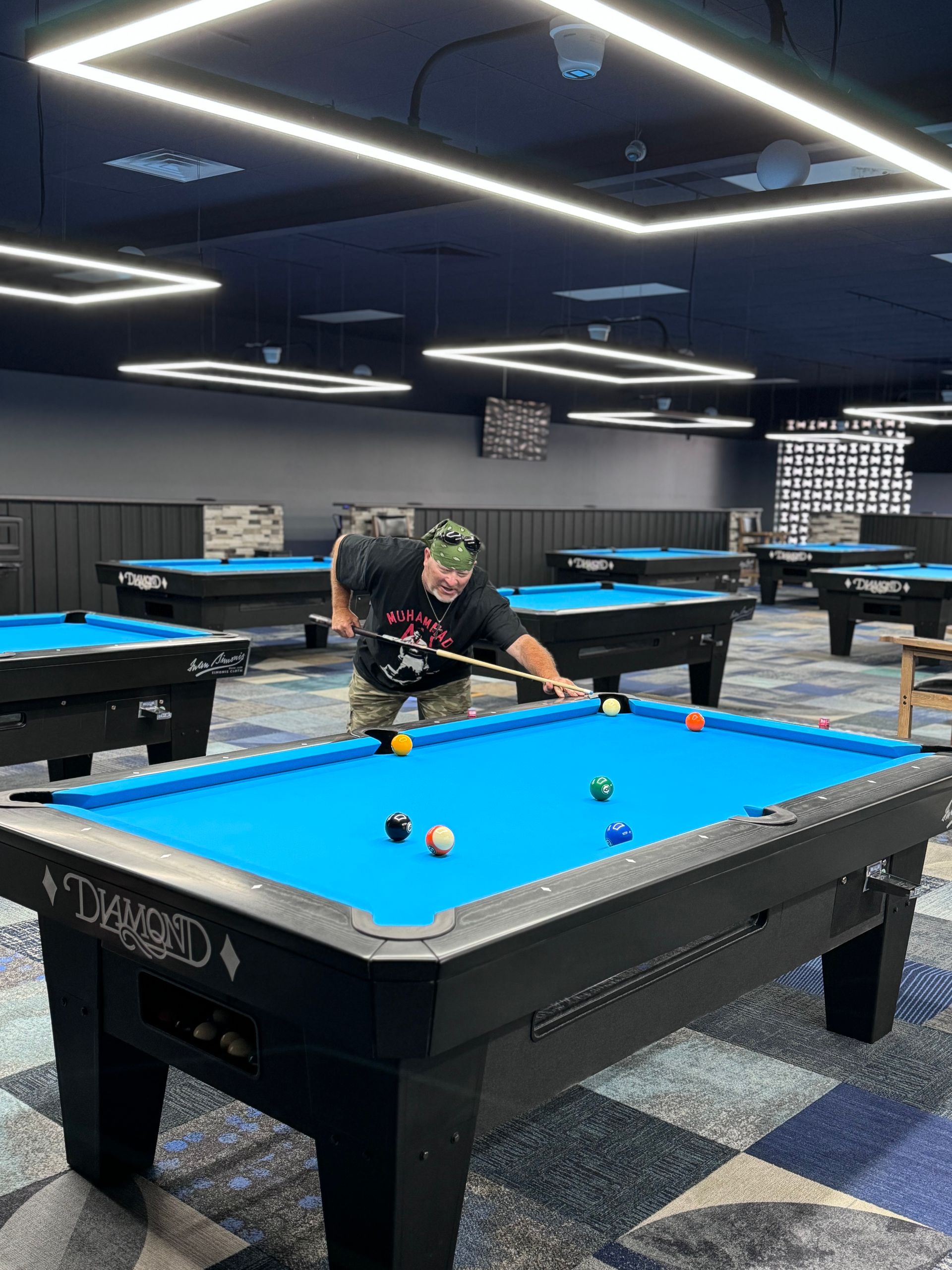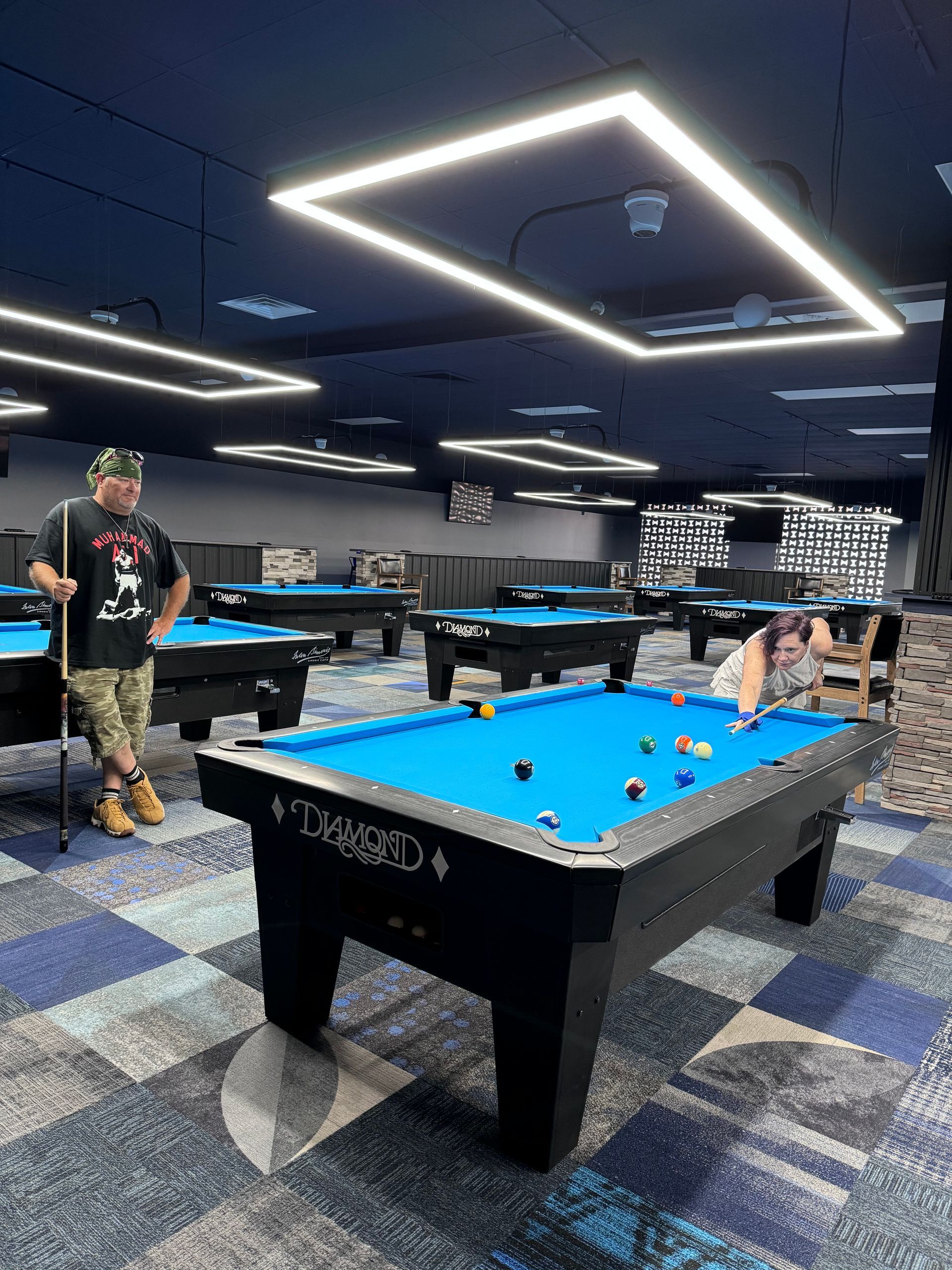Tiny & Jaime have poured their heart and soul into transforming the location with the best options available, including 12 brand-new Premium Diamond Billiards Tables covered with 860 Simonis Cloth lit up with Premium LED Overhead Billiard Table Lights over each of the tables, 10 - 65" high definition televisions and the most vibrant flooring any establishment has to offer!